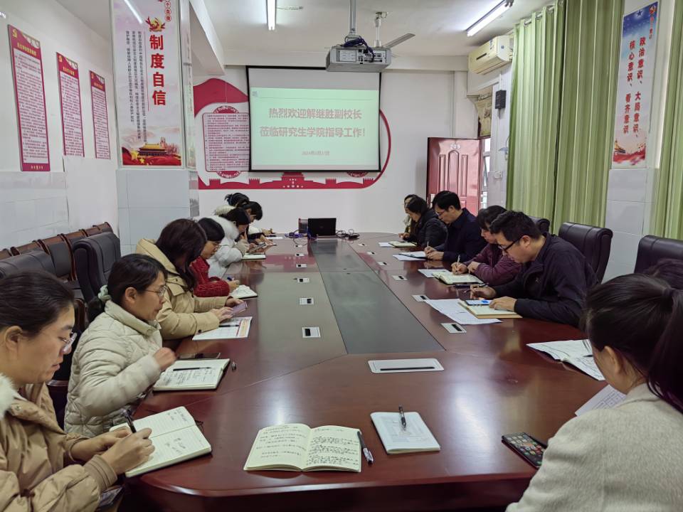 2024年2月27日下午,校党委常委、副校长解继胜到研究生学院就2024年春季学期研究生教育管理重点工作进行调研,研究生学院全体教职工参会。