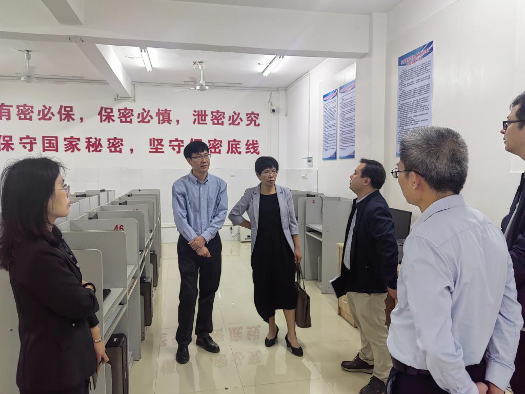 研究生学院就文件制度、硬件设施、工作流程等做了详细汇报。检查后赵丽娟副书记指出,命题室扩建工作是学校2024年保密工作的重要内容,要按照上级有关规定,高标准、严要求完成扩建工作,同时要完善工作流程,确保试题交接、运转安全保密,监控无死角,各个环节都有台账记录,另外要加强涉密人员保密教育,严格按照要求出入命题室,做到相互监督,有据可查,责任可究。