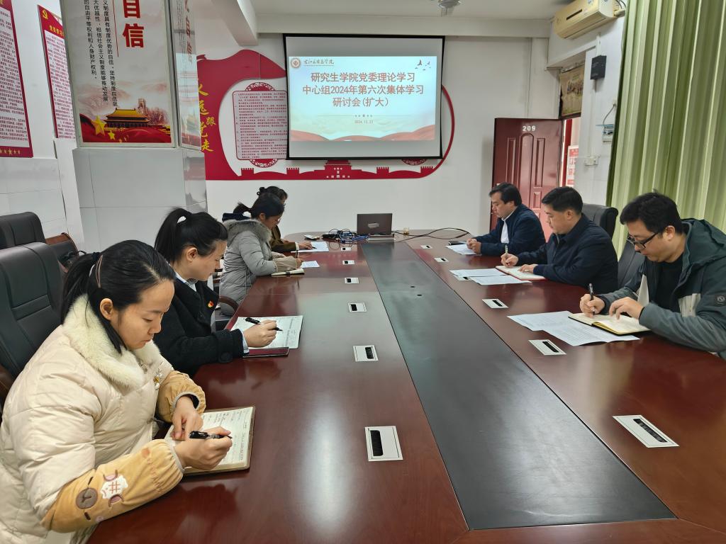 12月23日下午,研究生学院党委理论学习中心组开展扩大学习,深入学习贯彻落实全国教育大会精神,紧紧围绕教育强国建设目标,系统推进学校研究生教育改革,全面提升研究生教育质量,为党和国家培养更多的拔尖创新人才开展学习研讨。学校党委副书记、校长黄龙坚出席会议,学院中心组全体成员、科级干部参加会议。会议由研究生学院党委书记、院长莫小强主持。